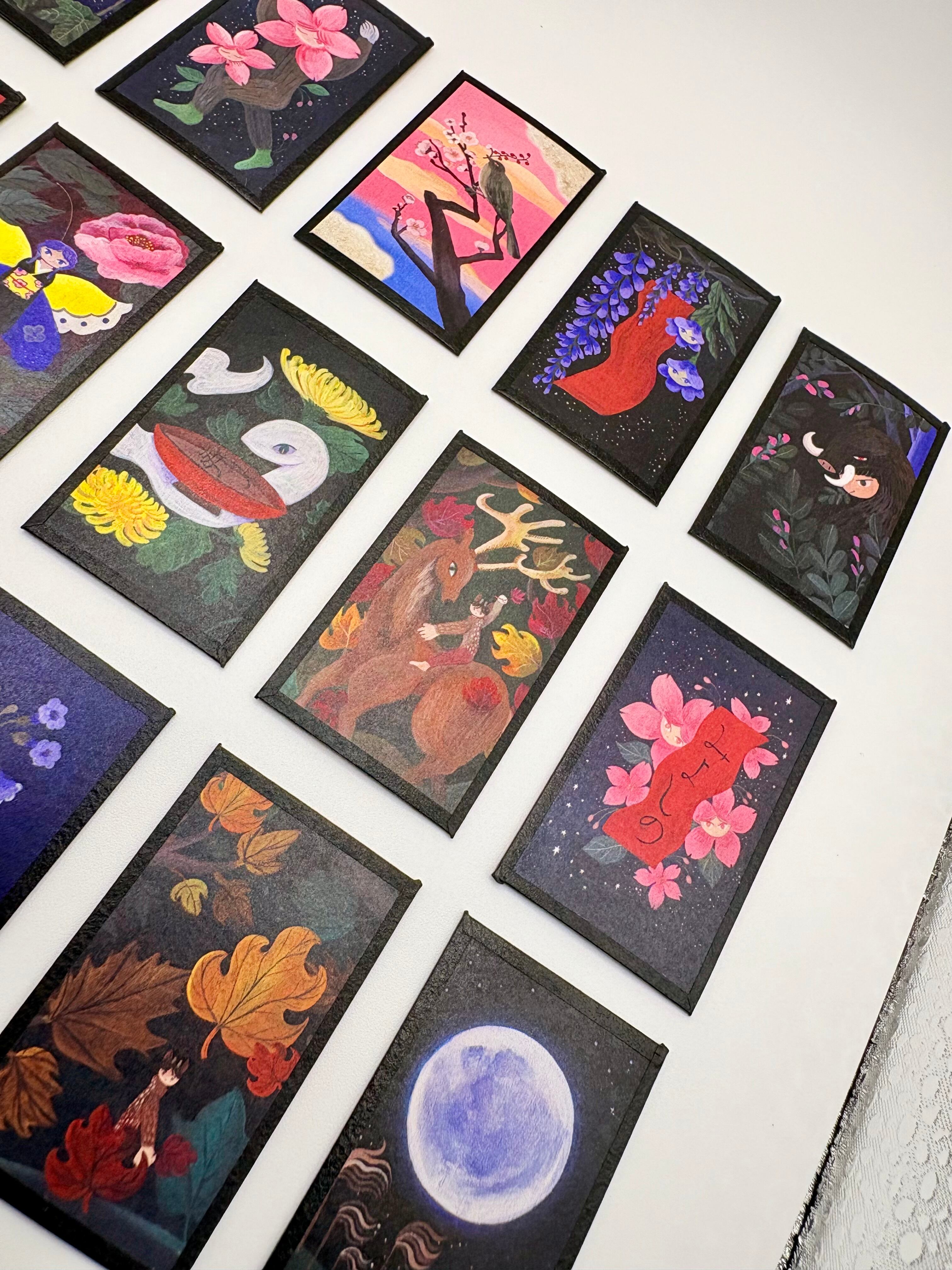 Each of the 48 cards features seasonal motifs of nature, making it both a collectible art piece and a playable deck.